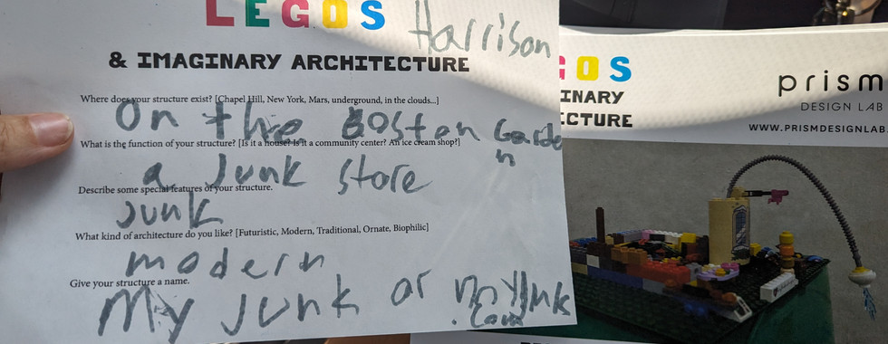 Then we moved into three dimensions, using Legos and imagination as our mediums. The campers learned about a variety of influences on architecture, including biophilic design and catenary arches. They created structures out of Legos and brought the structures to life with descriptions of their program, context, and style.